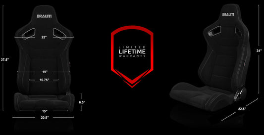 BRAUM ELITE Series Sport Reclinable Seats (Black Suede | Grey Stitching) - Priced Per Pair