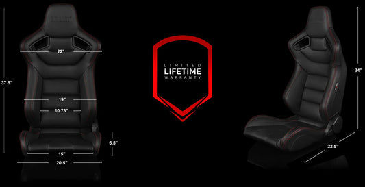 BRAUM ELITE Series Sport Reclinable Seats (Black Leatherette | Red Stitching) – Priced Per Pair