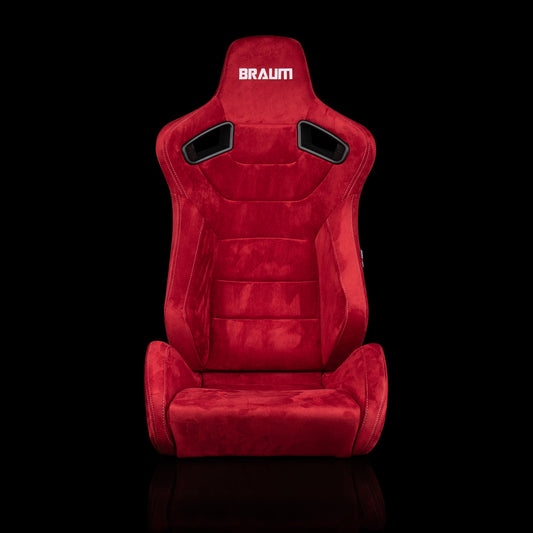 BRAUM ELITE Series Sport Reclinable Seats (Red Suede | White Stitching) - Priced Per Pair