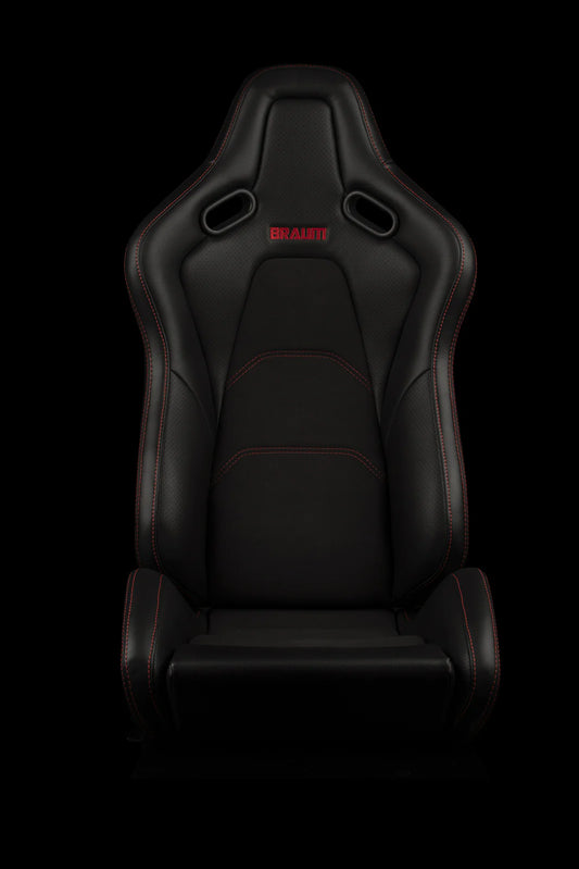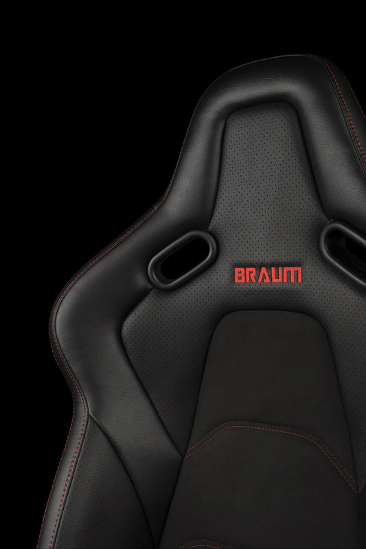 BRAUM FALCON-S Series Reclinable Composite Seats (Red Leatherette | Alcantara Inserts | Black Stitching) – Priced Per Pair
