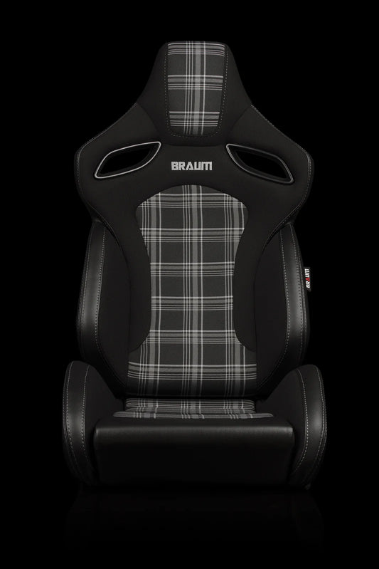BRAUM ORUE-S Series Sport Reclinable Seats (Black Leatherette | Grey Plaid) – Priced Per Pair